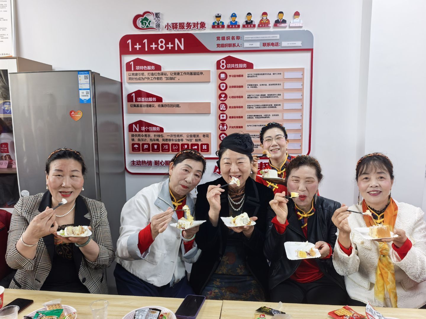 上午10点,生日会仪式正式拉开帷幕。志愿者合力将缀满新鲜水果的生日蛋糕缓缓推至会场中央。悠扬的生日歌响起,全体志愿者与寿星、社区工作人员一同打节拍合唱。歌声落毕,志愿者将切分好的蛋糕一一送至每位老人手中,老人们品尝着香甜蛋糕,脸上漾开幸福笑意,现场暖意融融。